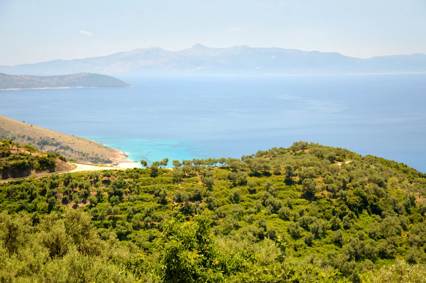 It's around 50 km (30 miles) from Sarande to Himare - around 1 hour drive. But I can bet it will take much longer than that! The views are so spectacular that you'll want to stop every few miles to admire the coast. First, we stopped for lunch at the vilage of Lukove - from the cafe the view was extraordinary - green hills stretching towards the turquoise sea. It made me completely speechless.