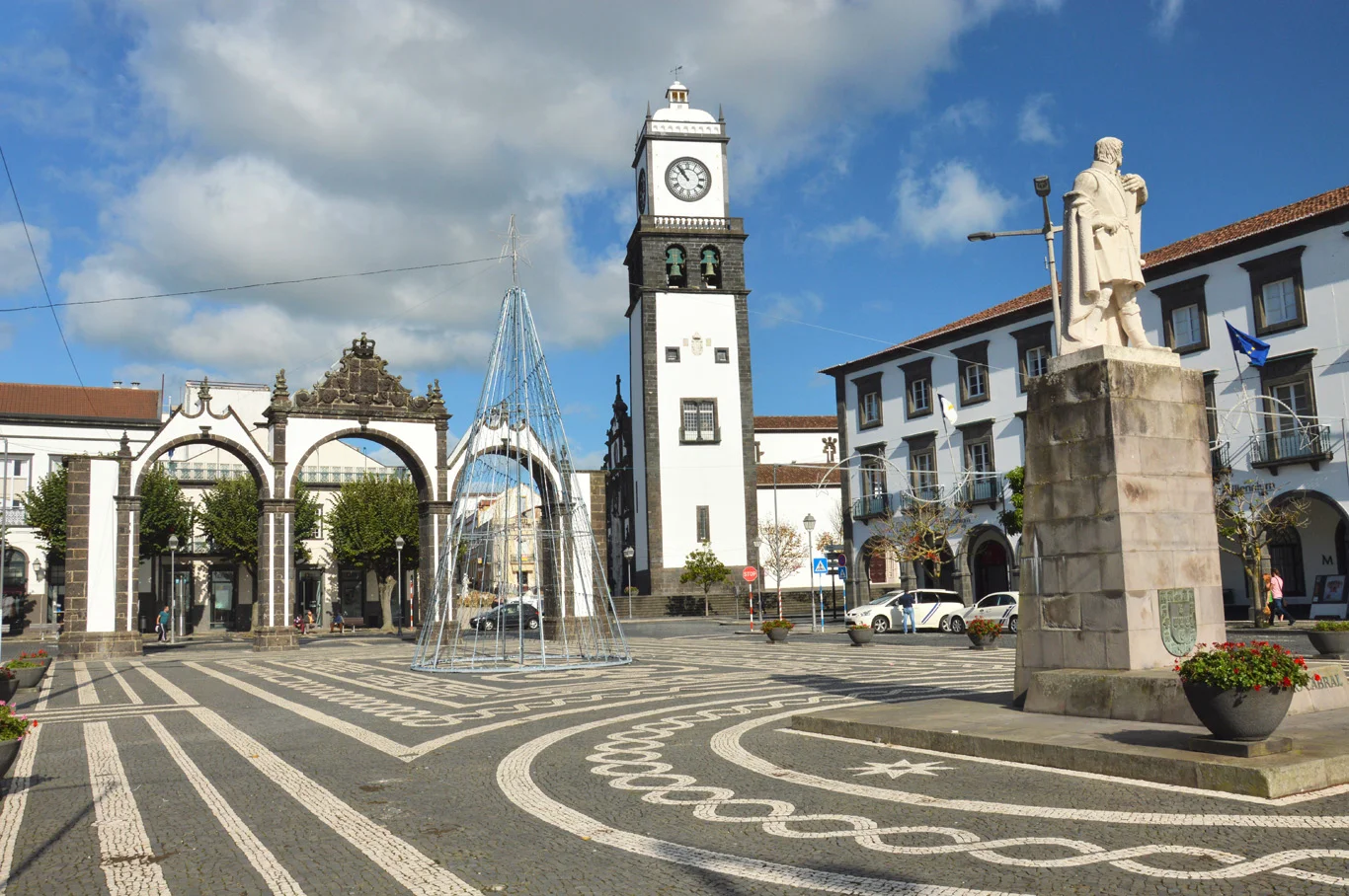 This is the strict center of Ponta Delgada. You can enjoy walking down the pedestrian streets here with the beautiful white washed houses. The main part of the old town is the Praça de Gonçalo Velho which features the City Gate (the 18th century arch - number 1 on the map) and the Church of St. Sebastian (number 2 on the map - the 16th century church with the tallest clock tower in Ponta Delgada). You can see the tower from many places around the town. At number 3 is the town hall which offers beautiful views over the town’s red roofs and waterfront. Unfortunately, when we got there, it was closed so we could not enter it. All the attractions around the Praça de Gonçalo Velho were beautifully decorated and illuminated at night for Christmas. If you want to obtain more information in Azores, right beside the square, there’s an tourist information office situated in a beautiful building near the promenade (number 4).